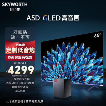 例如,创维电视A5D Pro采用了392分区的Mini LED背光技术,XDR 1500nits峰值亮度确保了画面在高亮区域也能保持足够的细节和亮度,97% DCI-P3电影级广色域覆盖了更多的颜色空间,S+高透屏技术使得画面更加清晰透亮。